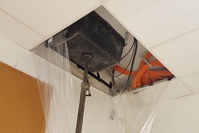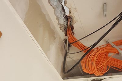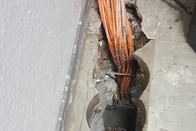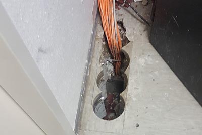 Aufgrund der stetig wachsenden EDV-Arbeitsplätze in der Behörde war der alte vorhandene EDV-Schacht zu klein und musste mit drei Kernbohrungen vergrößert werden.
